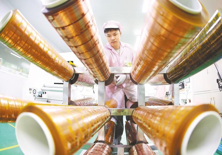 位于荆门市东宝工业园区的湖北永创新电子有限公司二期智能工厂内,工人们正在操作生产新能源柔性线路板。 (世界网赵平、金阳峰摄)