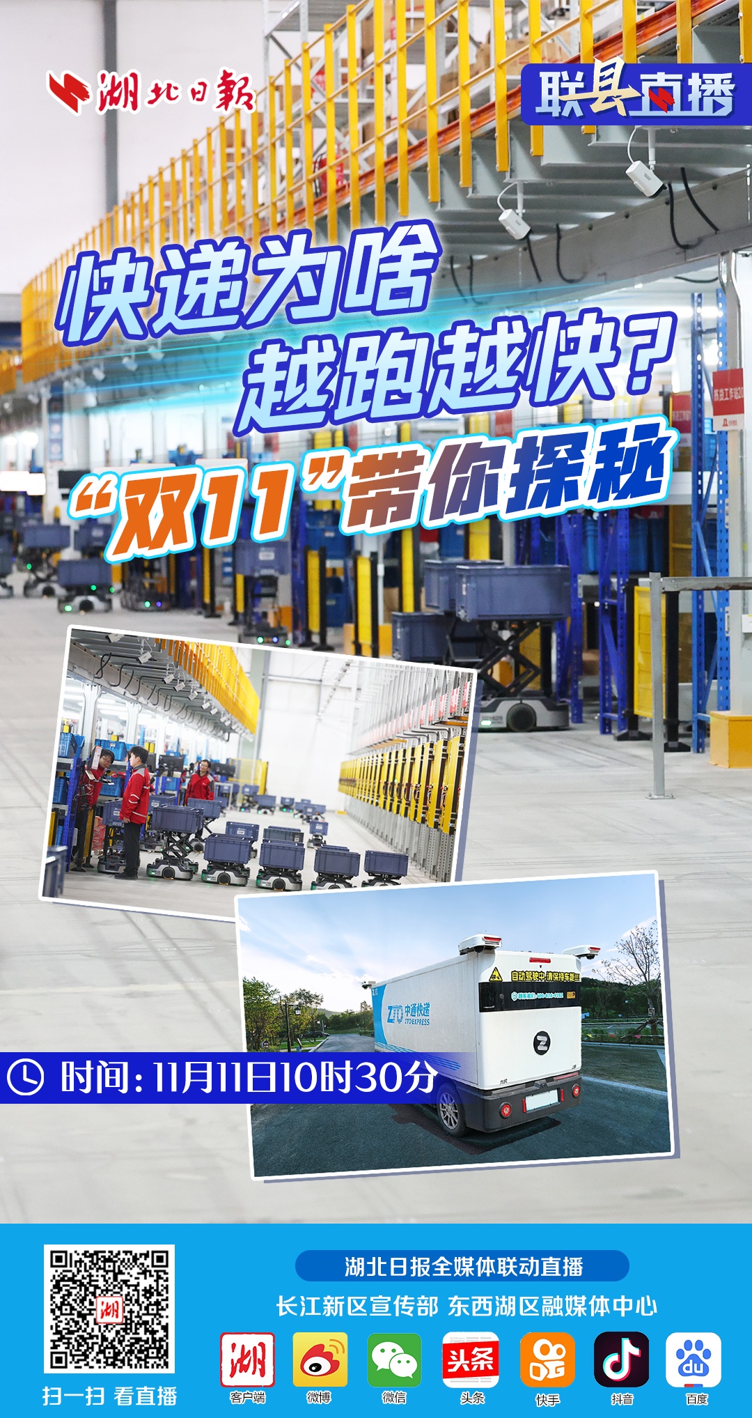 “双11”购物狂欢正如火如荼地进行。付款后,显示已从仓库发货。许多快递产品第二天或当天送达。这种“几乎飞起来”的体验背后隐藏着什么样的密码? 11月11日10点30分,湖北日报直播带你一探究竟。位于武汉长江新区阳逻经济开发区的京东物流园,400台机器人全面发力,直通1.5万平方米的立体仓库。主播将带大家走进主仓储区,近距离观看机器人如何精准工作,看智能科技如何加速表达的传递,直观感受爆炸订单背后的市场活力崩溃。包裹派送公告离开物流园区后,如何准确、快速派送?镜头转向东西湖中通快递三秀路分公司武汉市区。在这里,主播将跟随无人驾驶快递车投递包裹,看看它如何将快递从社区站点送到用户手中,同时衰减这辆小型无人驾驶车的大智慧。每天锁定湖北直播间,开启“双11”新体验。
